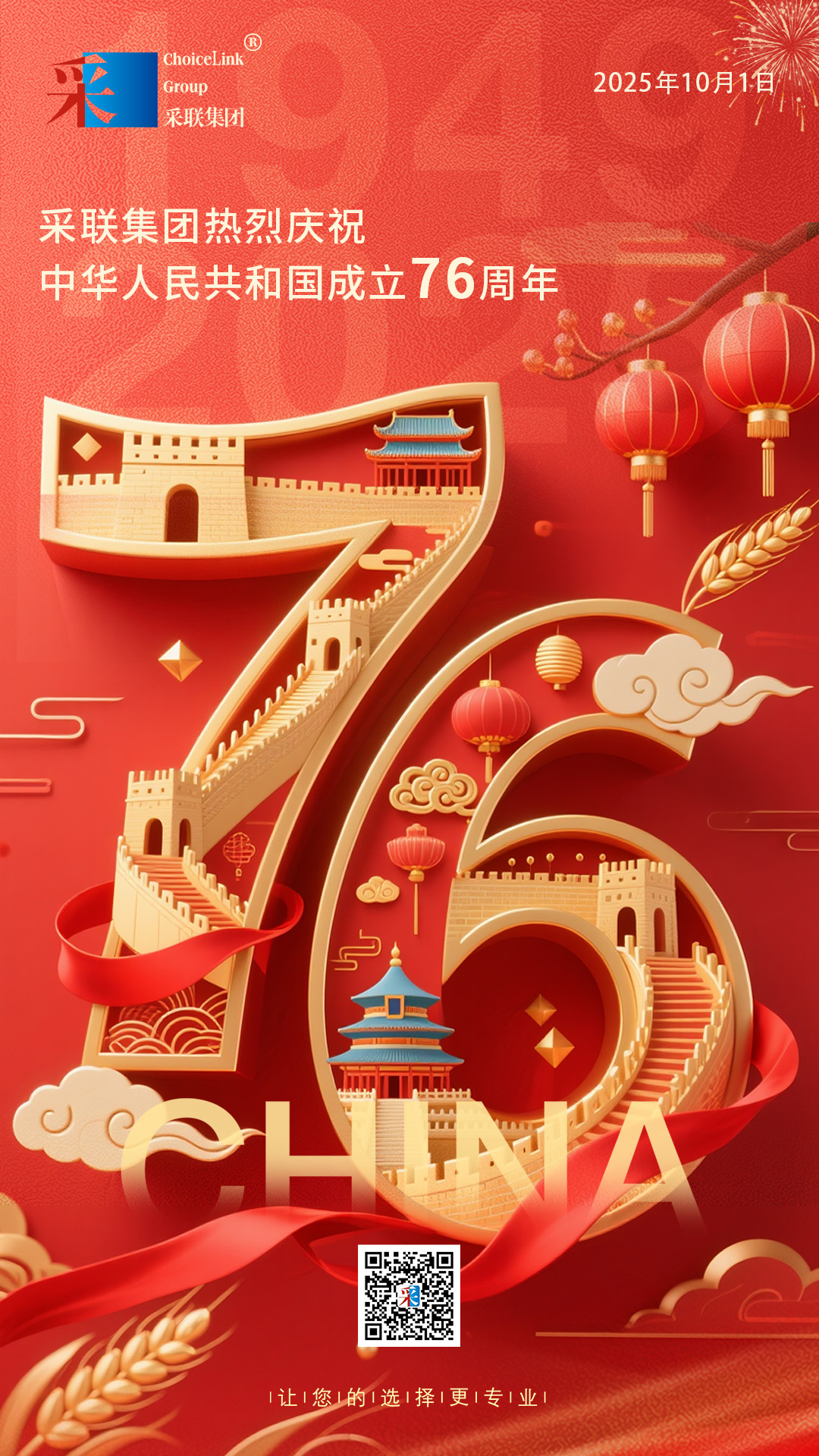 采聯(lián)集團熱烈慶祝中華人民共和國成立76周年