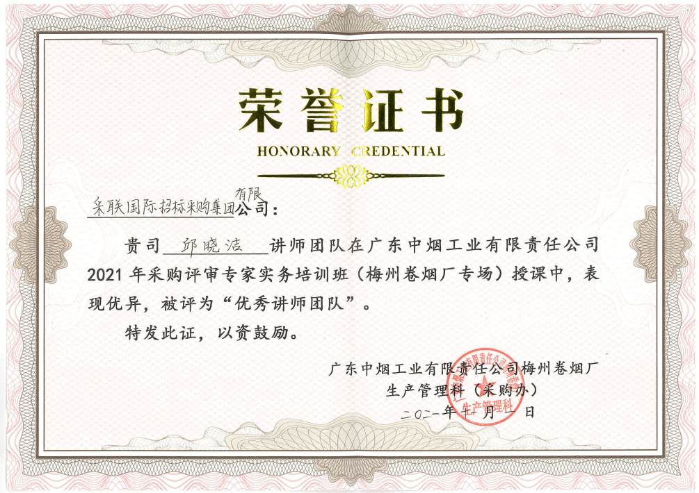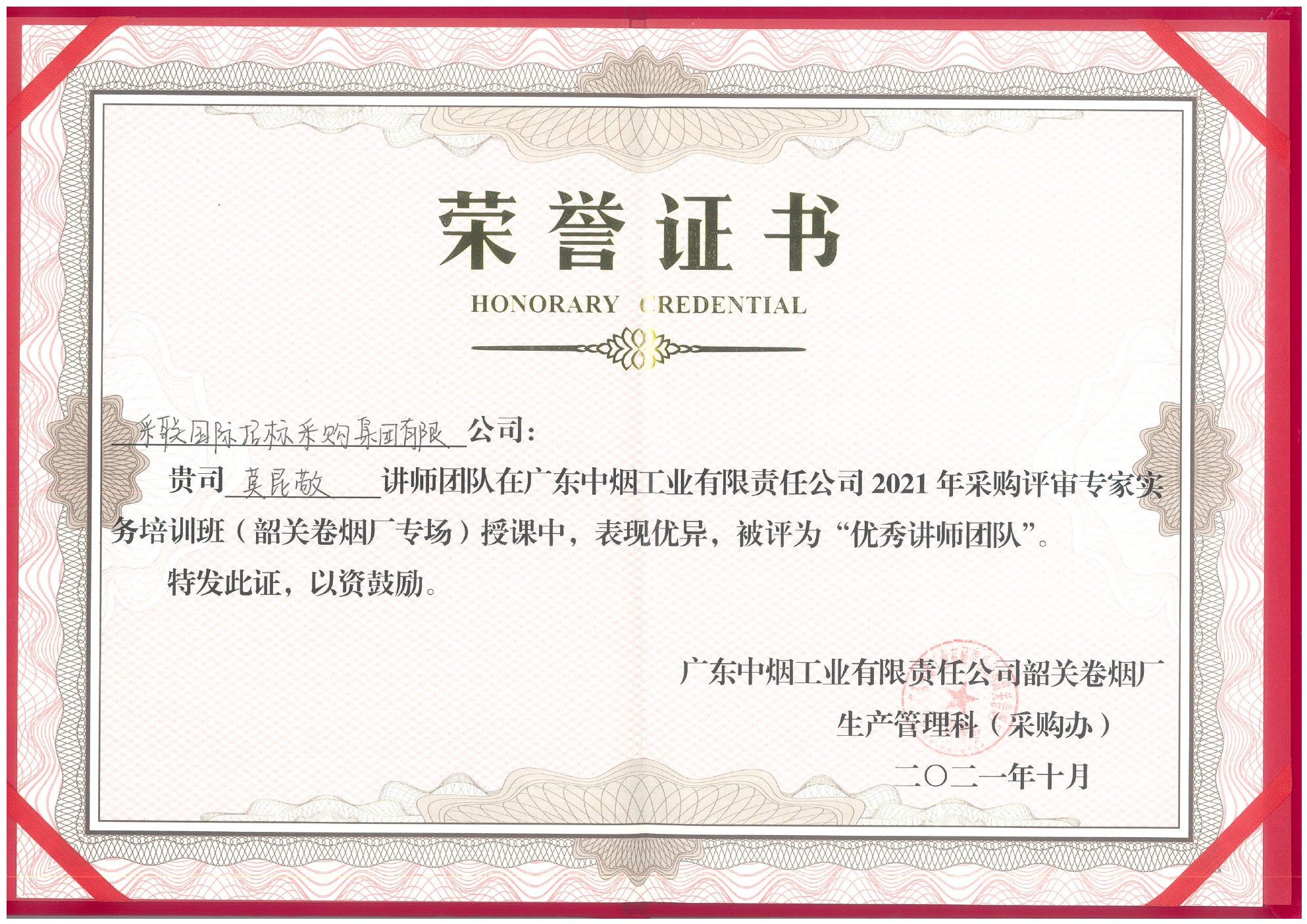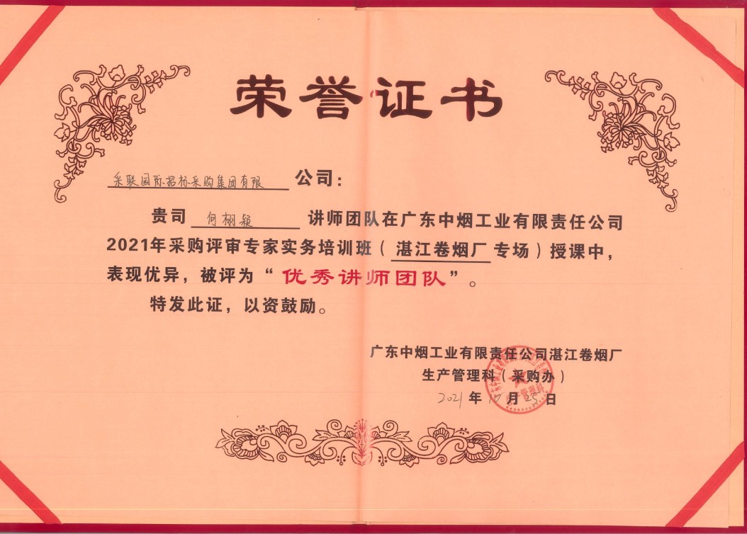 采聯(lián)集團在廣東中煙舉辦的2021年評審專家培訓(xùn)中,交出了漂亮的成績單。講師團隊在韶關(guān)卷煙廠、湛江卷煙廠、梅州卷煙廠、廣州卷煙廠、本部均獲得了“優(yōu)秀講師團隊稱號”,取得了四場第一名、一場第二名的佳績。