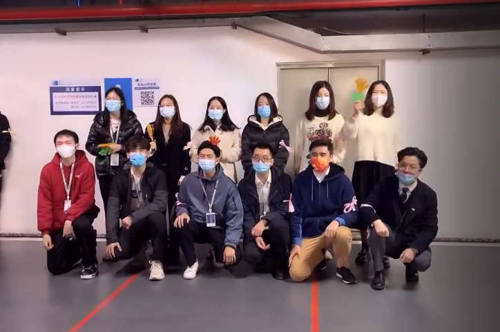 參賽職員隨機分為八支參賽隊,并佩戴不同顏色的絲帶作為隊伍標識,一一展示了各隊的隊名和口號。