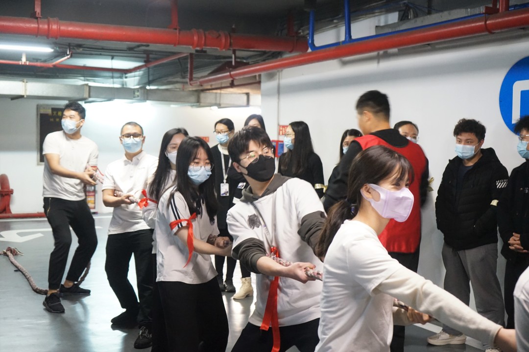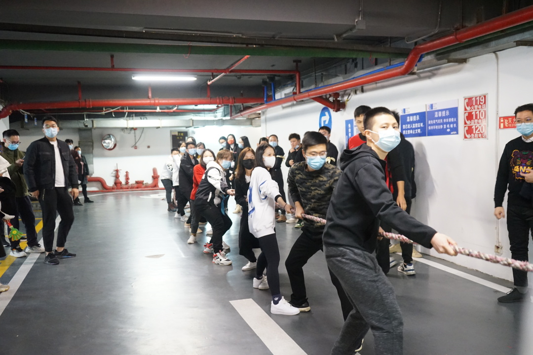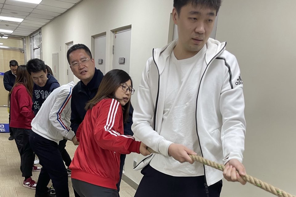 再觀北京分會場,參賽職員身穿中國紅運動服,寓意新的一年紅紅火火,同時也為冬奧會加油助威。現場由飛虎隊和龍騰虎躍隊進行回合制的拔河競賽。在每一回合結束后,雙方進行了認真的戰術討論和調整,經過激烈的比拼,最終龍騰虎躍隊稍勝一籌,在“一二、一二”的號子聲中,取得了比賽的勝利。